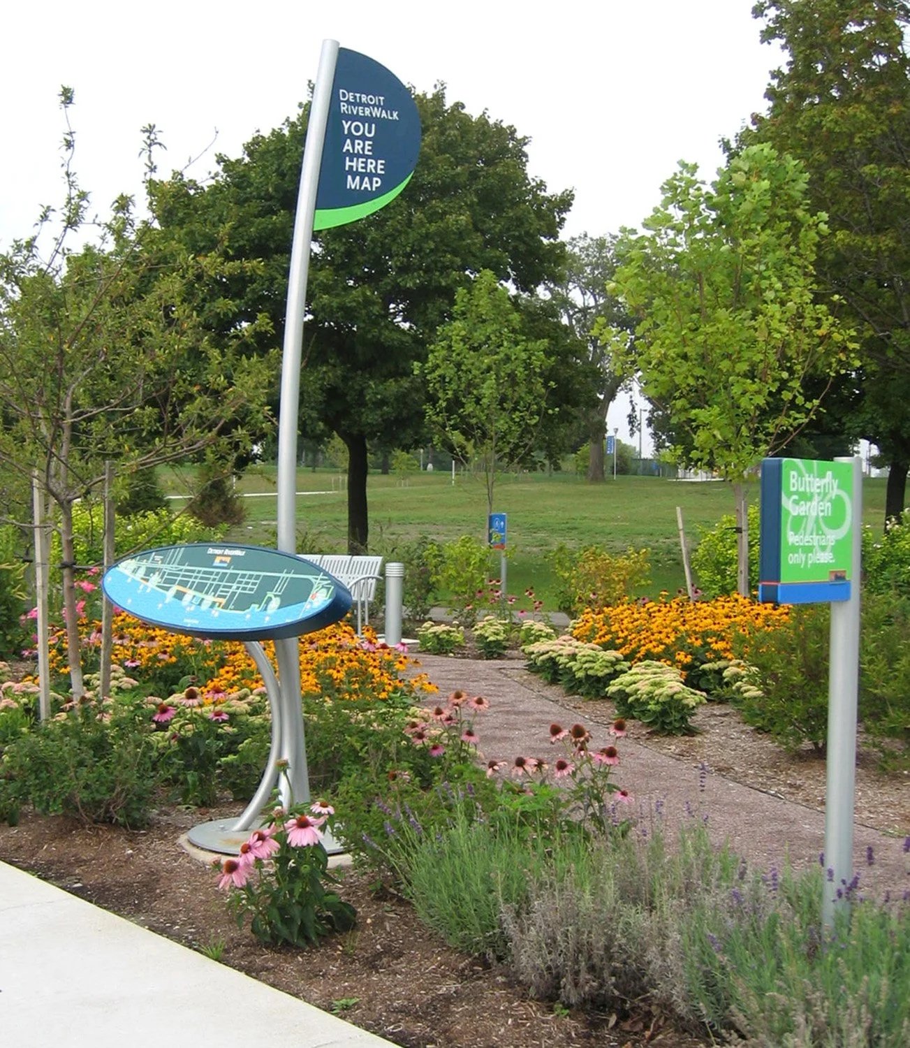 The Detroit Riverwalk’s wayfinding and donor recognition systems work in concert to create an experience that is welcoming, legible, and meaningful. Visitors feel confident navigating the space, while donors are recognized in a manner that enhances—rather than interrupts—the public realm.